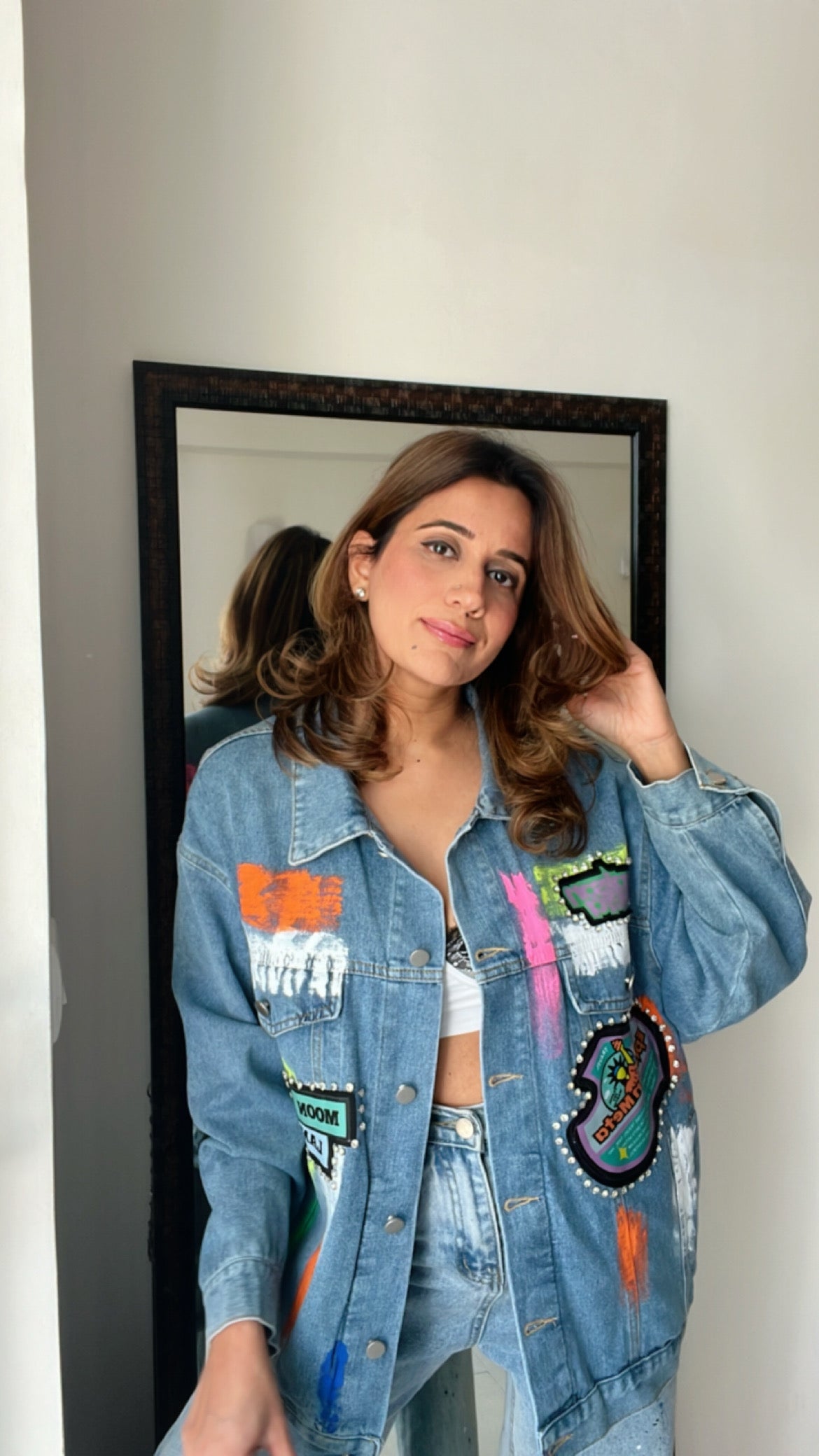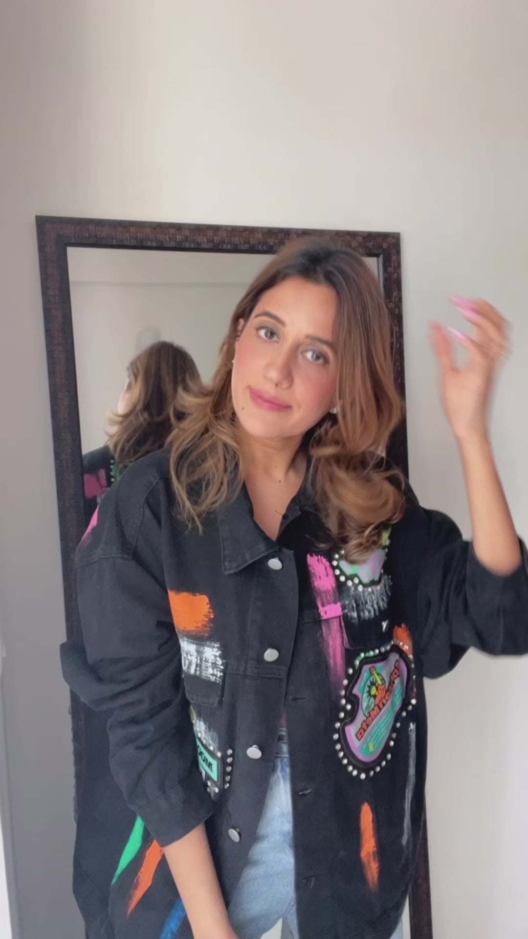 Splash of color and oversized Denim Jacket is all you need to uplift your boring outfit and mood. Itโs definitely a Keeper!