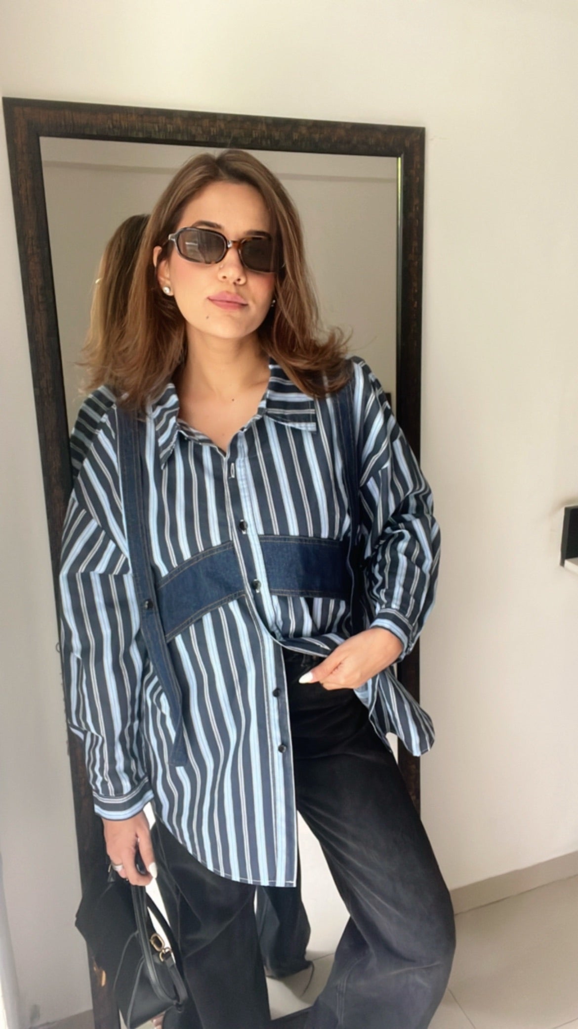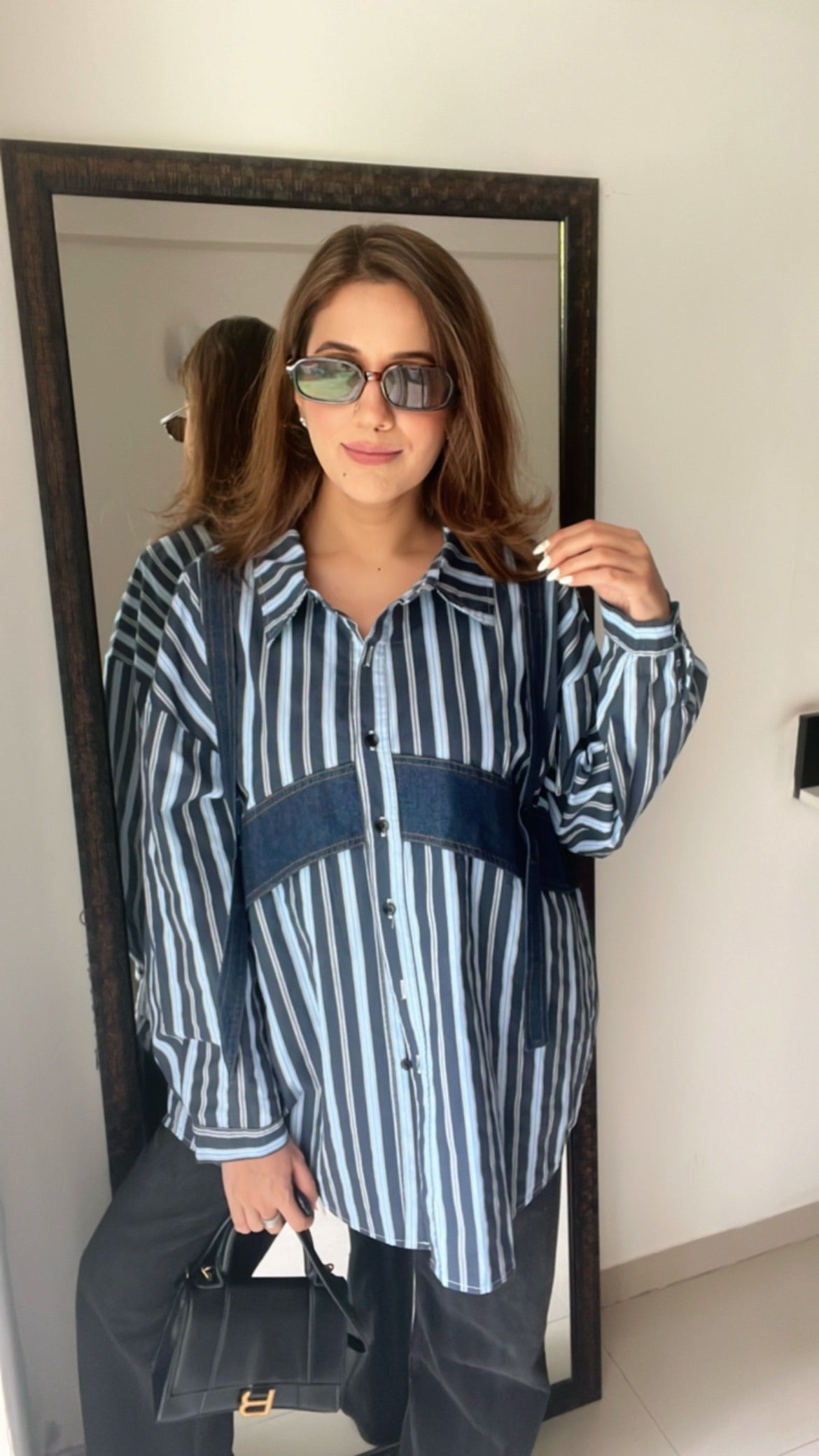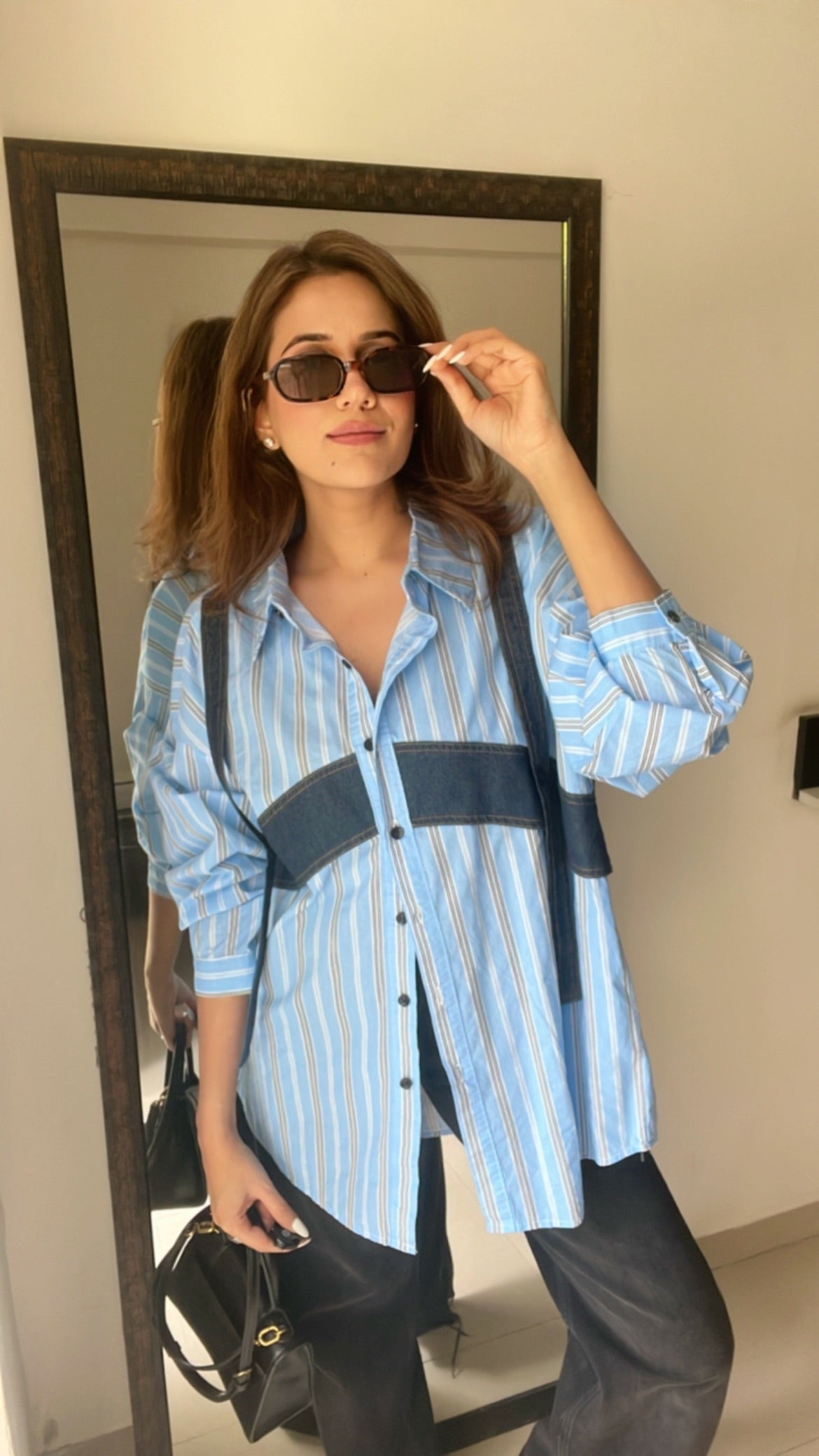 Pinstripe Denim Harness Poplin Shirt