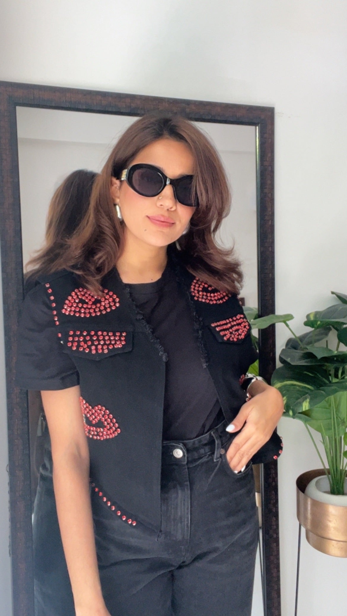 Red Studded Lips Denim Fall Vest